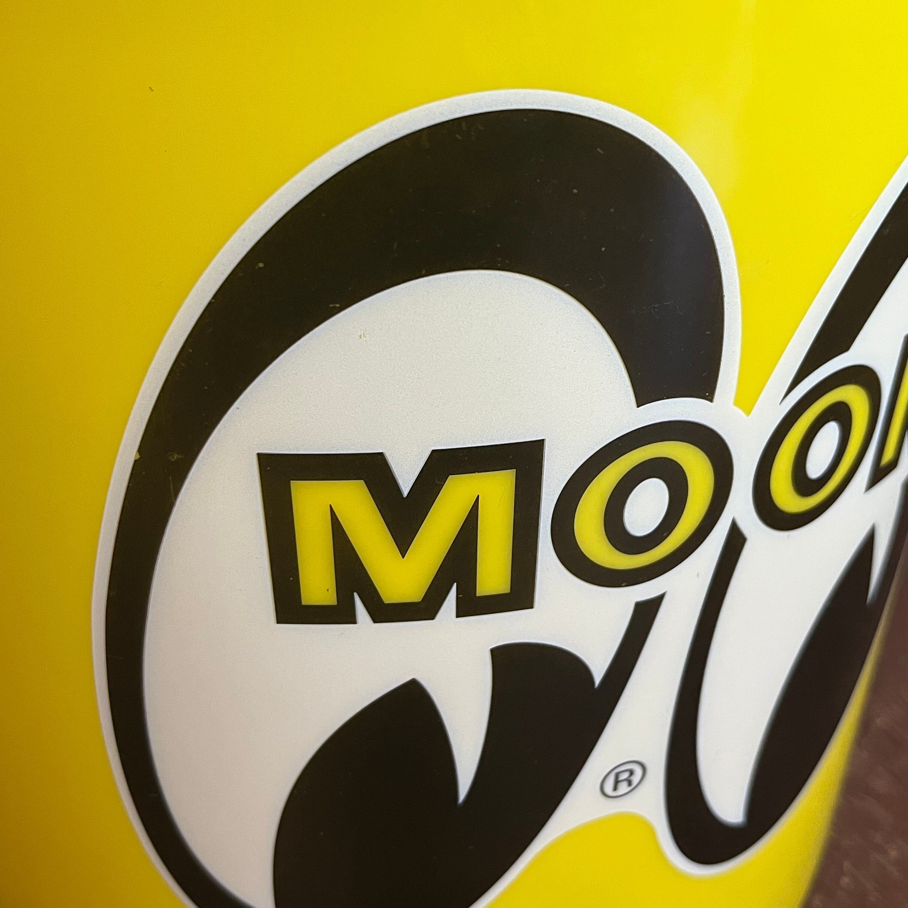 フロントにはムーンアイズの大きなアイシェイプと、バックには "Light Duty MQQN Bucket For Any Purpose" の文字がプリントされています。