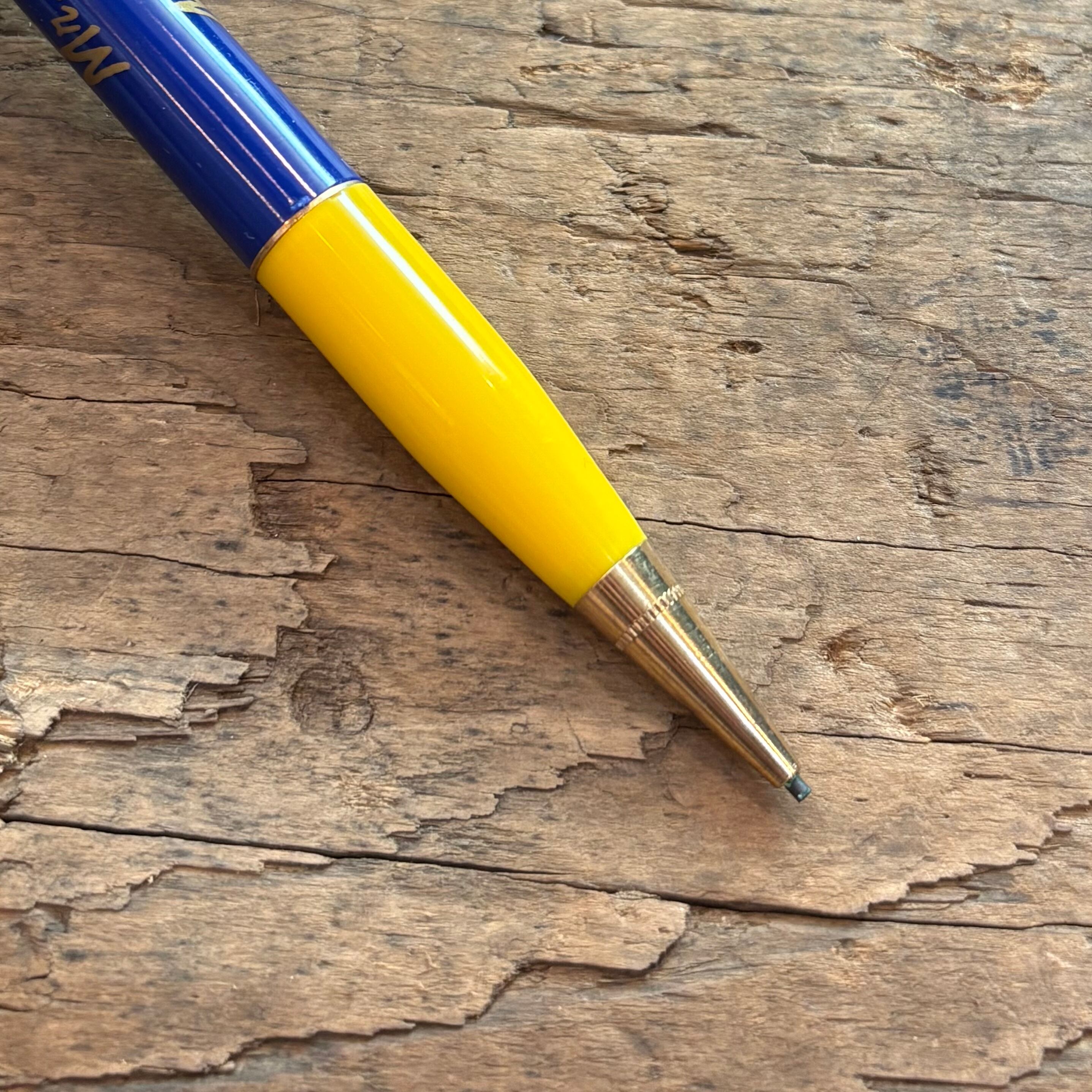 先端の金属部分を回転させて芯を繰り出すタイプのペンです。