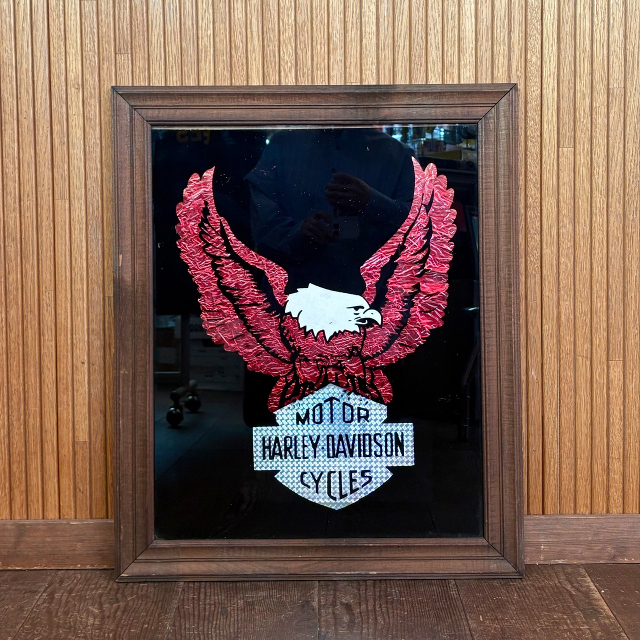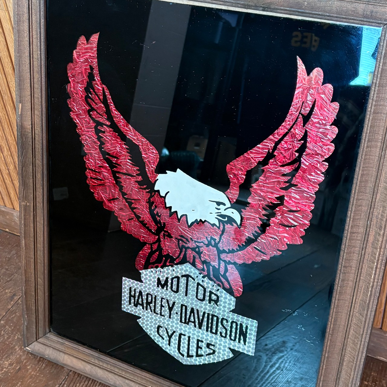 こちらアメリカにて入手しましたハーレーダビッドソンのパブミラーになります。