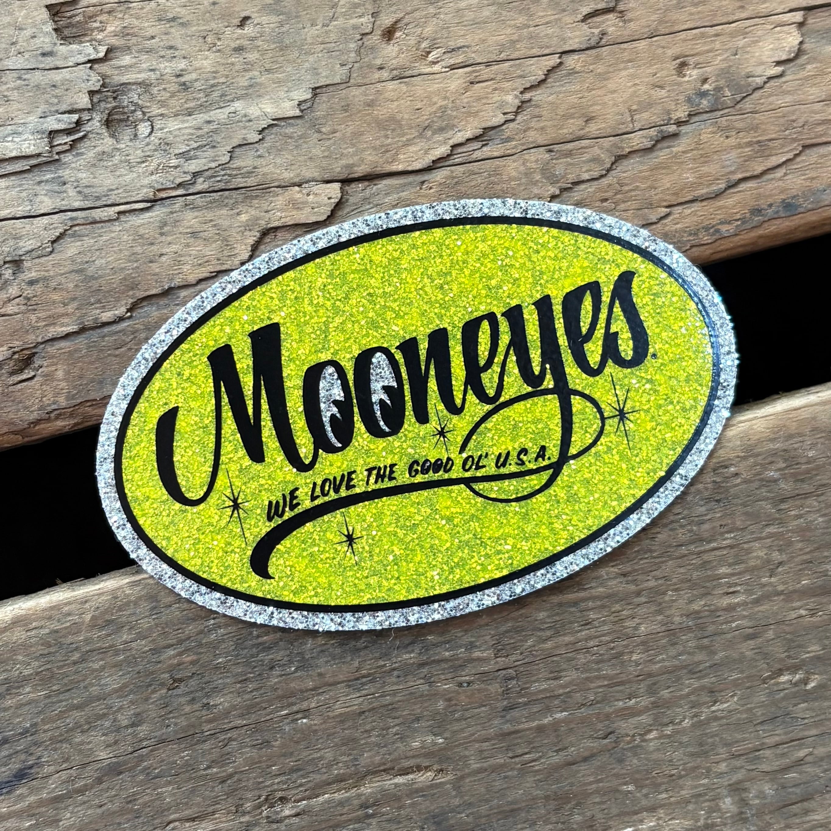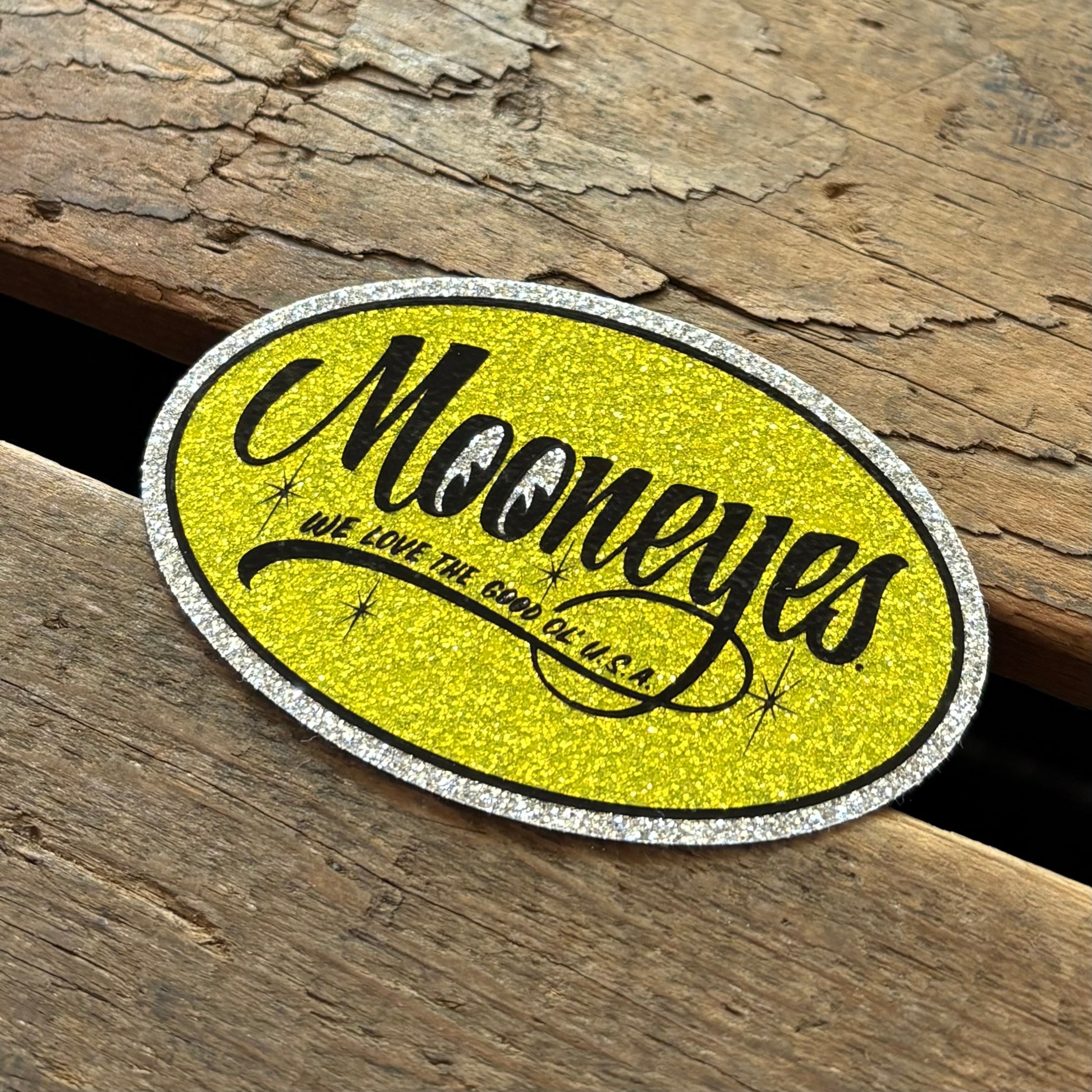 シンプルなMOONEYESロゴにキラキラと存在感を放つメタルフレークデザイン。